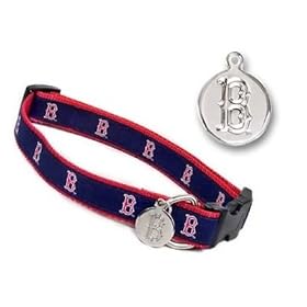 Red Sox Nation!!Show the world you and your dog are Boston Red Sox fans! Beautiful officially licensed collar made with woven ribbon sewn on high-tensile webbing. Quick-release buckle. ID tag made of solid brass with engraved team logo, hand polished with silver-tone finish. Size: Small - 5/8" width - Fits 10"-14"