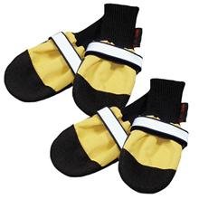 Finally dog boots that stay on! Muttluks are not just fancy footwear. Made in Canada, Muttluks provide comfort, protection and durability to keep paws healthy. While these boots are very durable, keep in mind that dog boots are like people boots, they wear out. They'll wear out a lot faster on cement too (yes that's a picture of our Tilli on cement). Machine washable. Four boots to a package. All Weather Muttluks are designed for 4-season use. Yellow only. Fleece Lined Muttluks are designed for cold season use. Red only. Size X-Large: From 4.25" to 4.75".